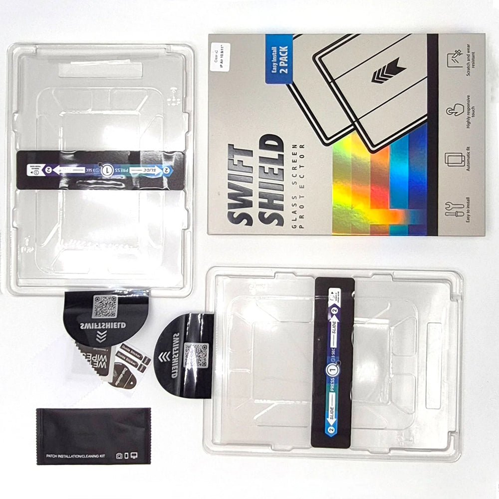 SwiftShield Clear Premium Tempered Glass Screen Protector Alignment Kit for iPad Air 10.9" [2-Pack] Protect your precious device with a layer of tempered glass (goodbye to scratches and cracks!). The SwiftShield Clear Premium Tempered Glass Screen Protector Alignment Kit ensures precise installation for your iPad Air 10.9", so you can have peace of mind and a crystal-clear view at all times.