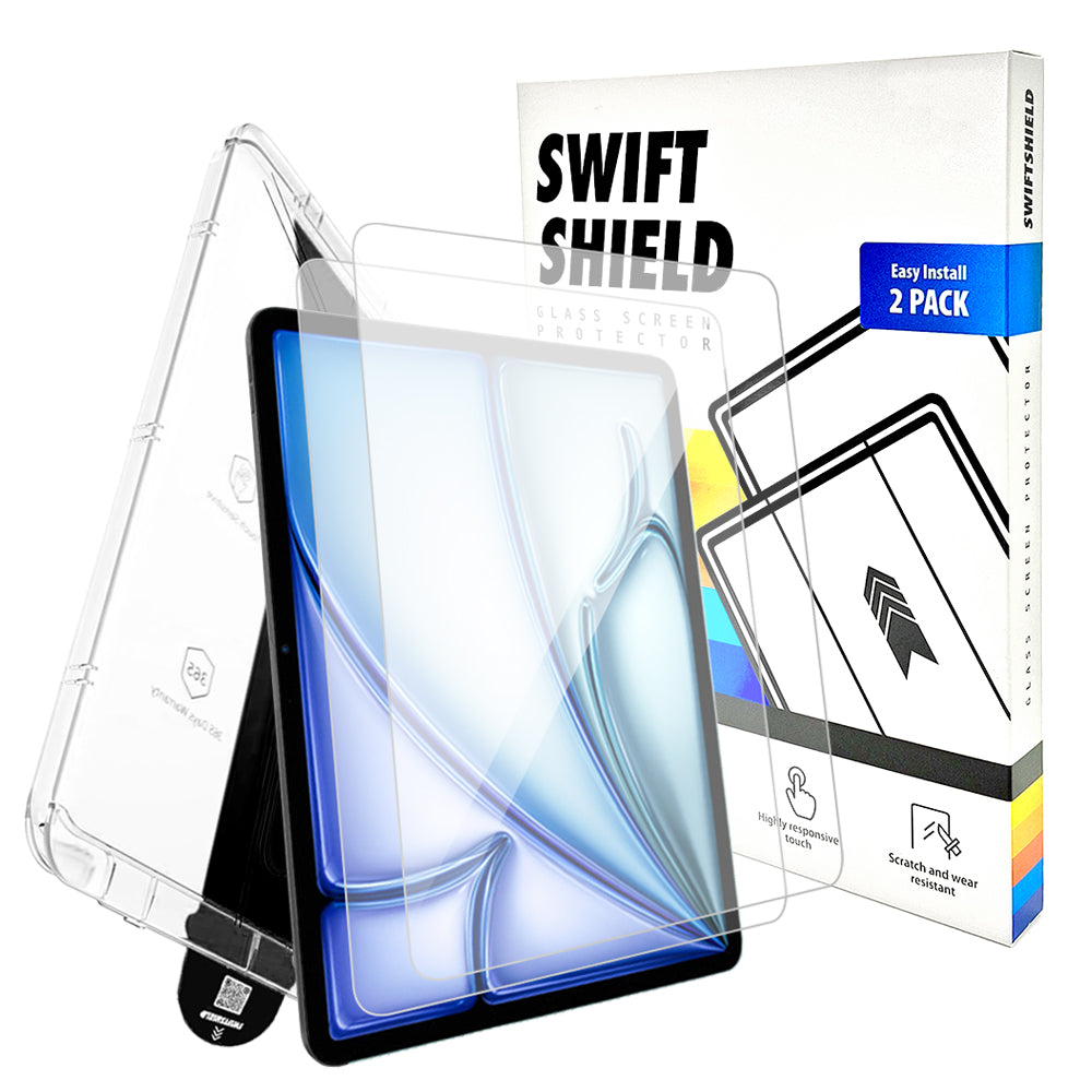 SwiftShield Clear Premium Tempered Glass Screen Protector Alignment Kit for iPad Air 11" M2 [2-Pack] Protect your precious device with a layer of tempered glass (goodbye to scratches and cracks!). The SwiftShield Clear Premium Tempered Glass Screen Protector Alignment Kit ensures precise installation for your iPad Air 11" M2, so you can have peace of mind and a crystal-clear view at all times.