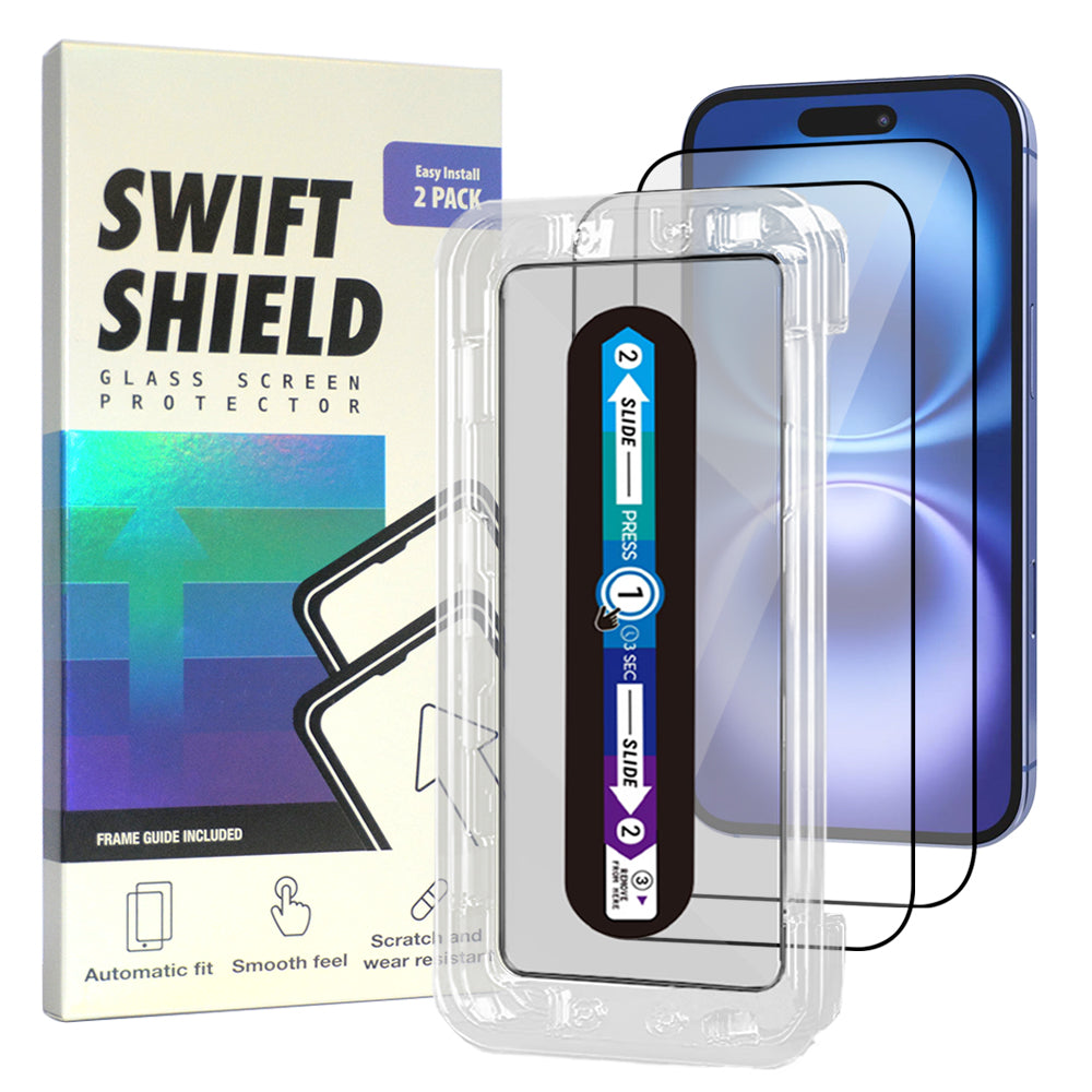 iPhone 16 Tempered Glass Screen Protector [2-Pack] with Easy Alignment Frame – Clear, Premium by SwiftShield