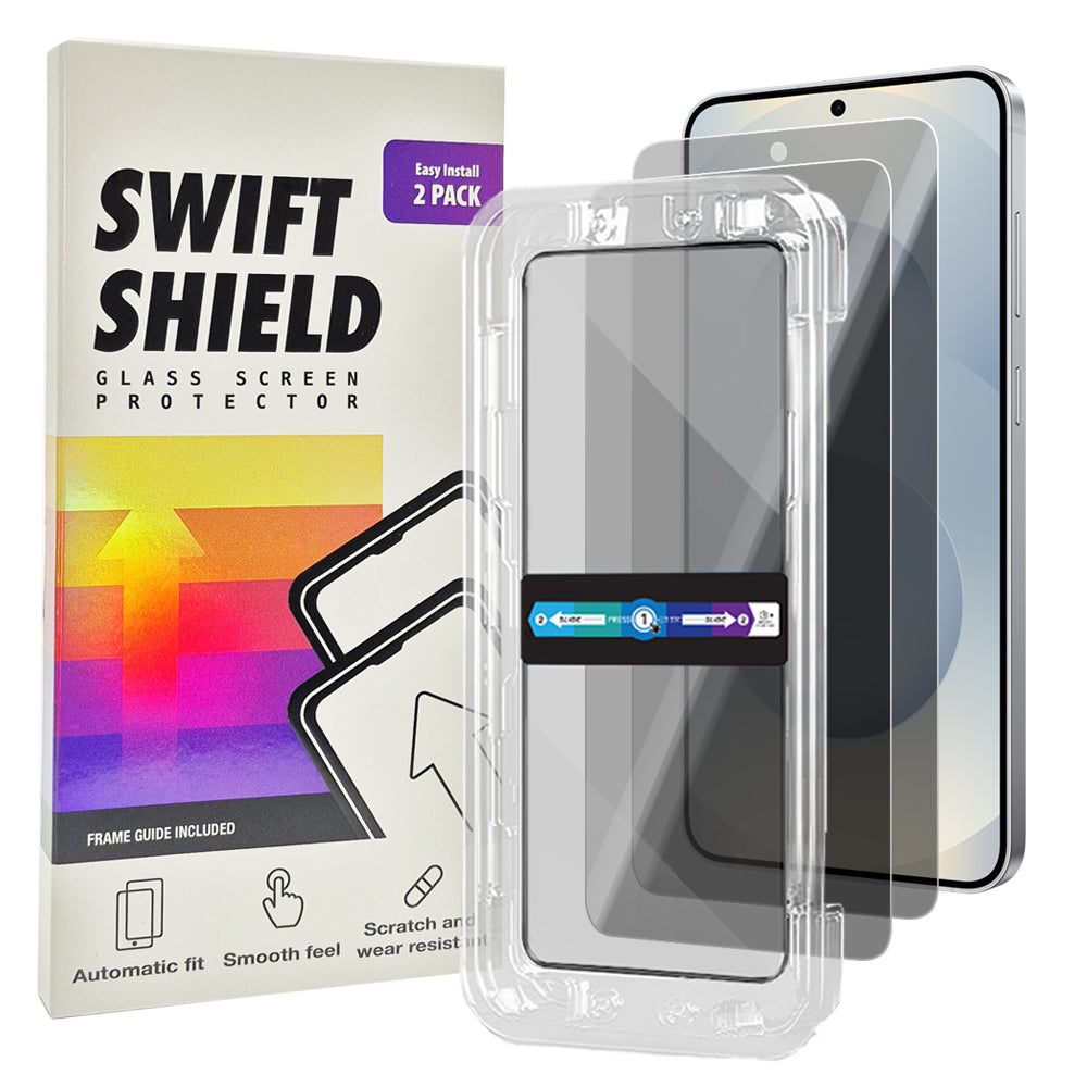Samsung Galaxy S25 Plus Tempered Glass Screen Protector [2-Pack] with Easy Alignment Frame – Privacy, Premium by SwiftShield