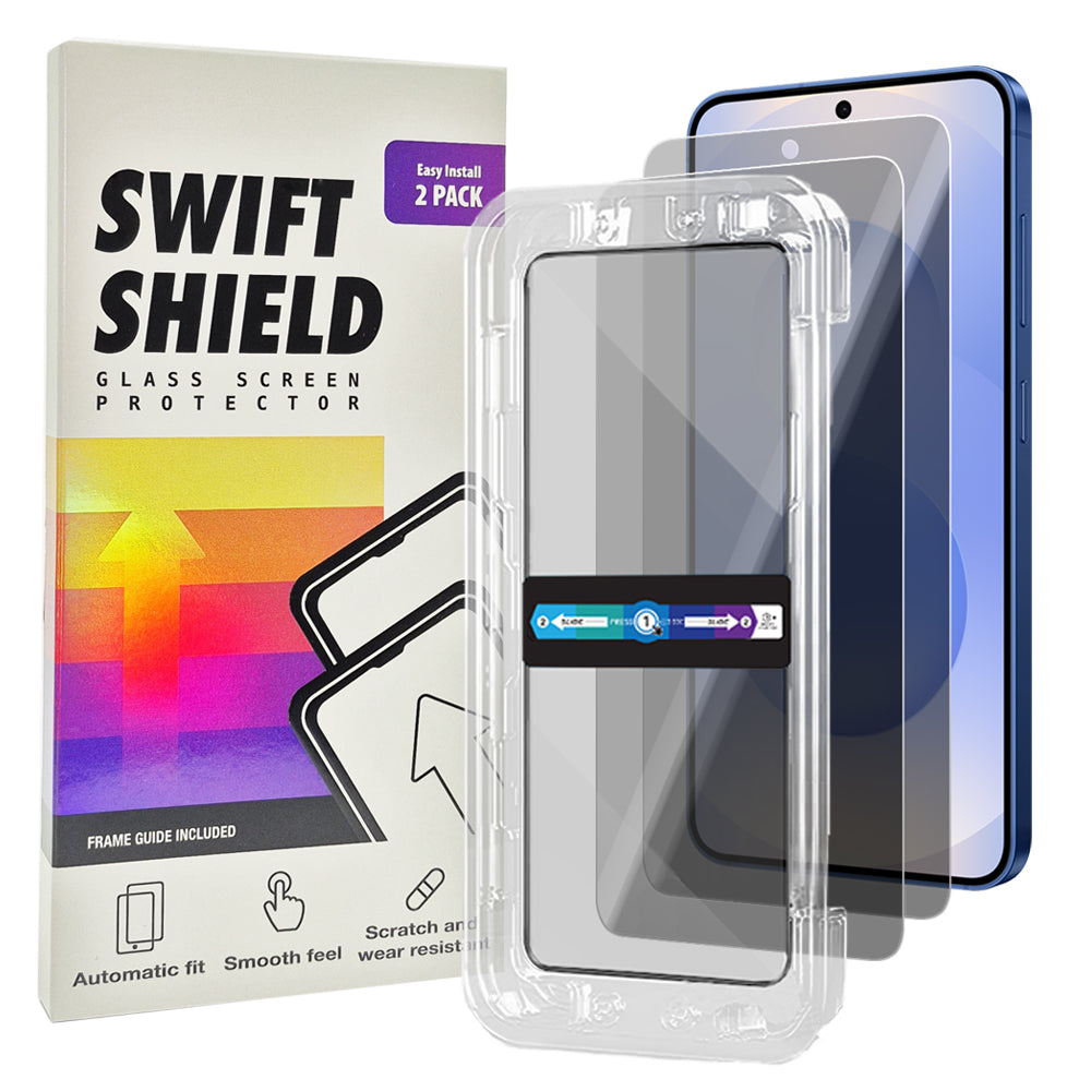Samsung Galaxy S25 Tempered Glass Screen Protector [2-Pack] with Easy Alignment Frame – Privacy, Premium by SwiftShield
