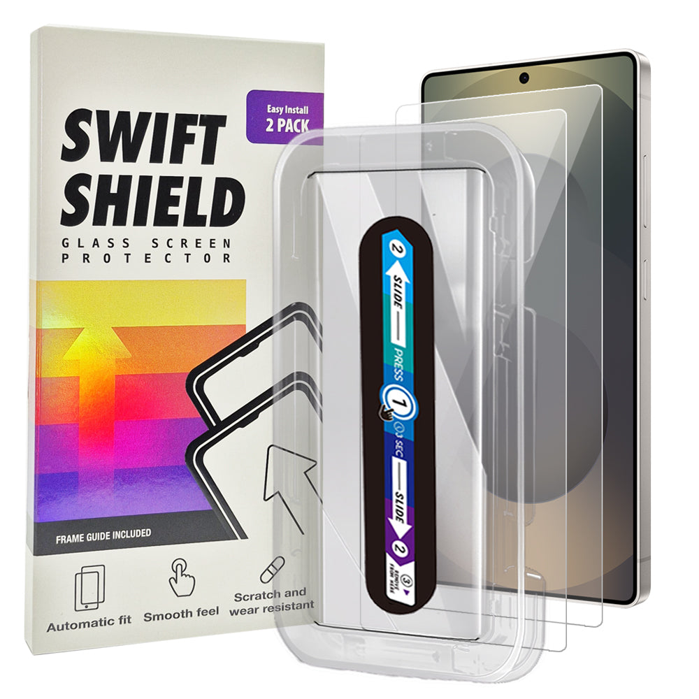 SwiftShield Clear Premium Tempered Glass Screen Protector Alignment Kit for Samsung Galaxy S25 Ultra [2-Pack] Protect your precious device with a layer of tempered glass (goodbye to scratches and cracks!). The SwiftShield Clear Premium Tempered Glass Screen Protector Alignment Kit ensures precise installation for your Samsung Galaxy S25 Ultra, so you can have peace of mind and a crystal-clear view at all times.