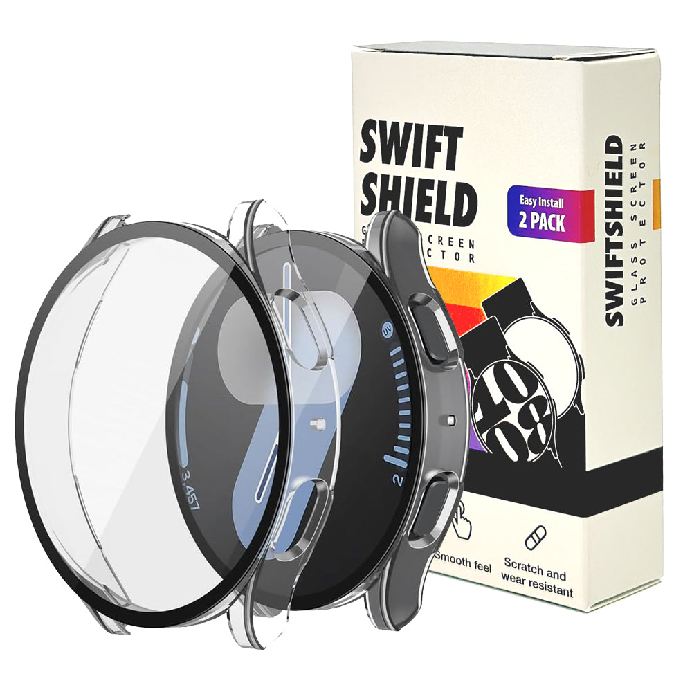 Samsung Galaxy Watch 7 44mm Case with Glass Screen Protector by SwiftShield (2 Pack - Clear)