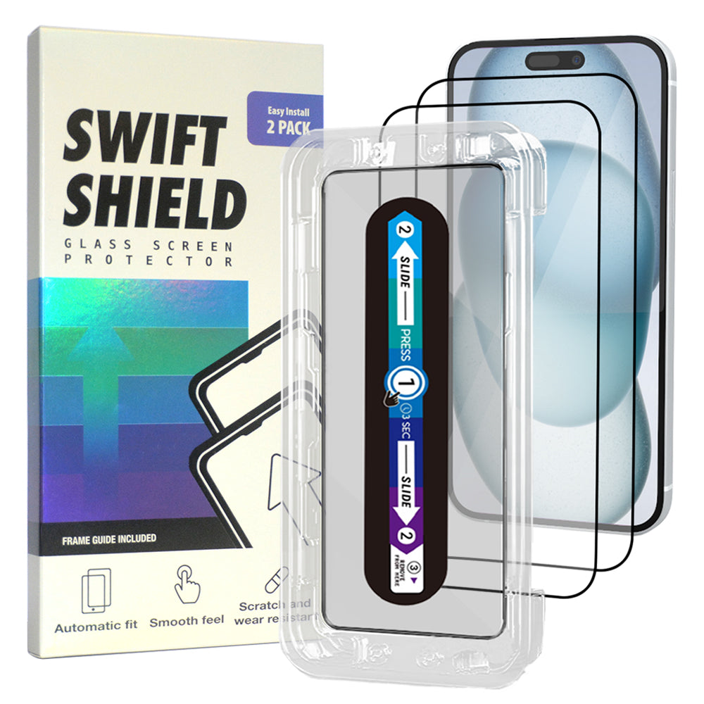 iPhone 15 Tempered Glass Screen Protector [2-Pack] with Easy Alignment Frame – Clear, Premium by SwiftShield