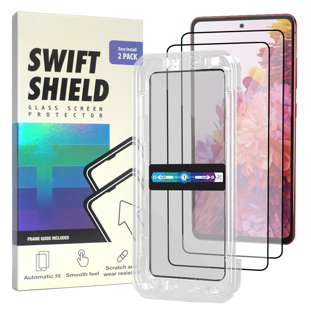 SwiftShield Clear Premium Tempered Glass Screen Protector Alignment Kit for Samsung Galaxy S20 FE [2-Pack] Protect your precious device with a layer of tempered glass (goodbye to scratches and cracks!). The SwiftShield Clear Premium Tempered Glass Screen Protector Alignment Kit ensures precise installation for your Samsung Galaxy S20 FE, so you can have peace of mind and a crystal-clear view at all times.