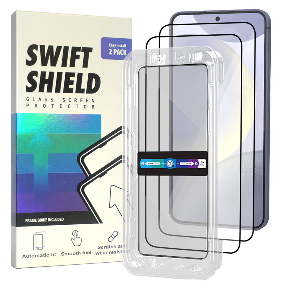 Samsung Galaxy S24 Tempered Glass Screen Protector [2-Pack] with Easy Alignment Frame – Clear, Premium by SwiftShield
