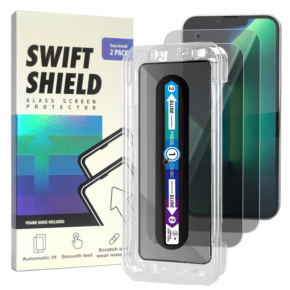 iPhone 13 Pro Max Tempered Glass Screen Protector [2-Pack] with Easy Alignment Frame – Privacy, Premium by SwiftShield