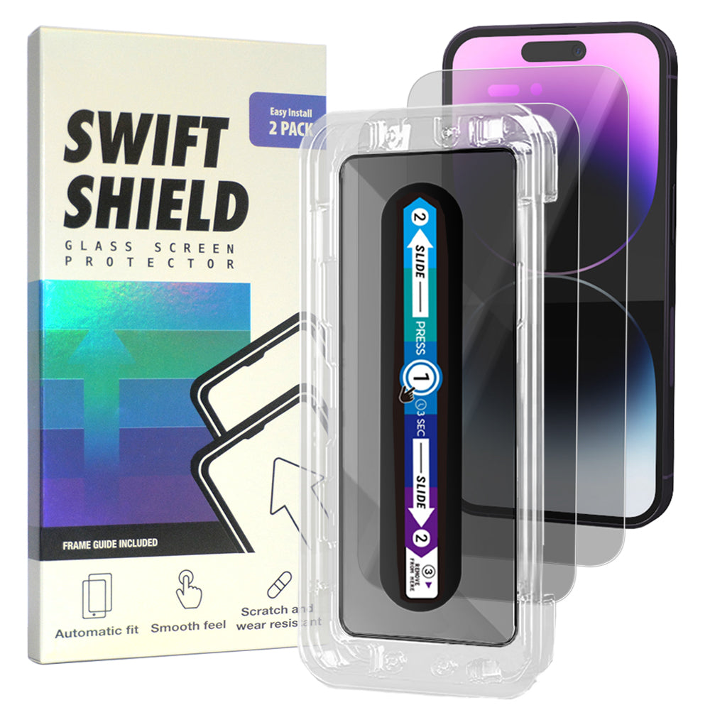 iPhone 14 Pro Tempered Glass Screen Protector [2-Pack] with Easy Alignment Frame – Privacy, Premium by SwiftShield