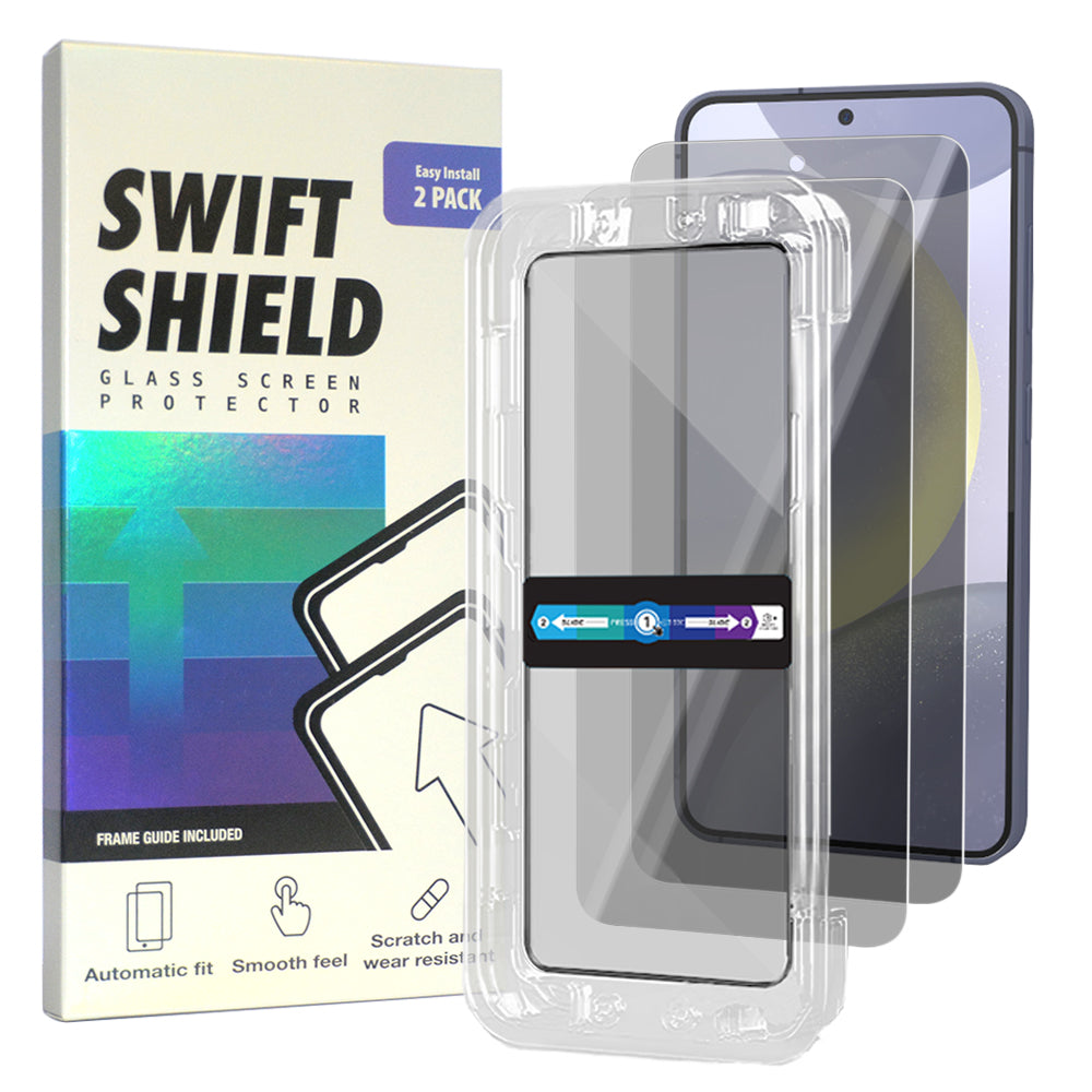 Samsung Galaxy S24 Tempered Glass Screen Protector [2-Pack] with Easy Alignment Frame – Privacy, Premium by SwiftShield