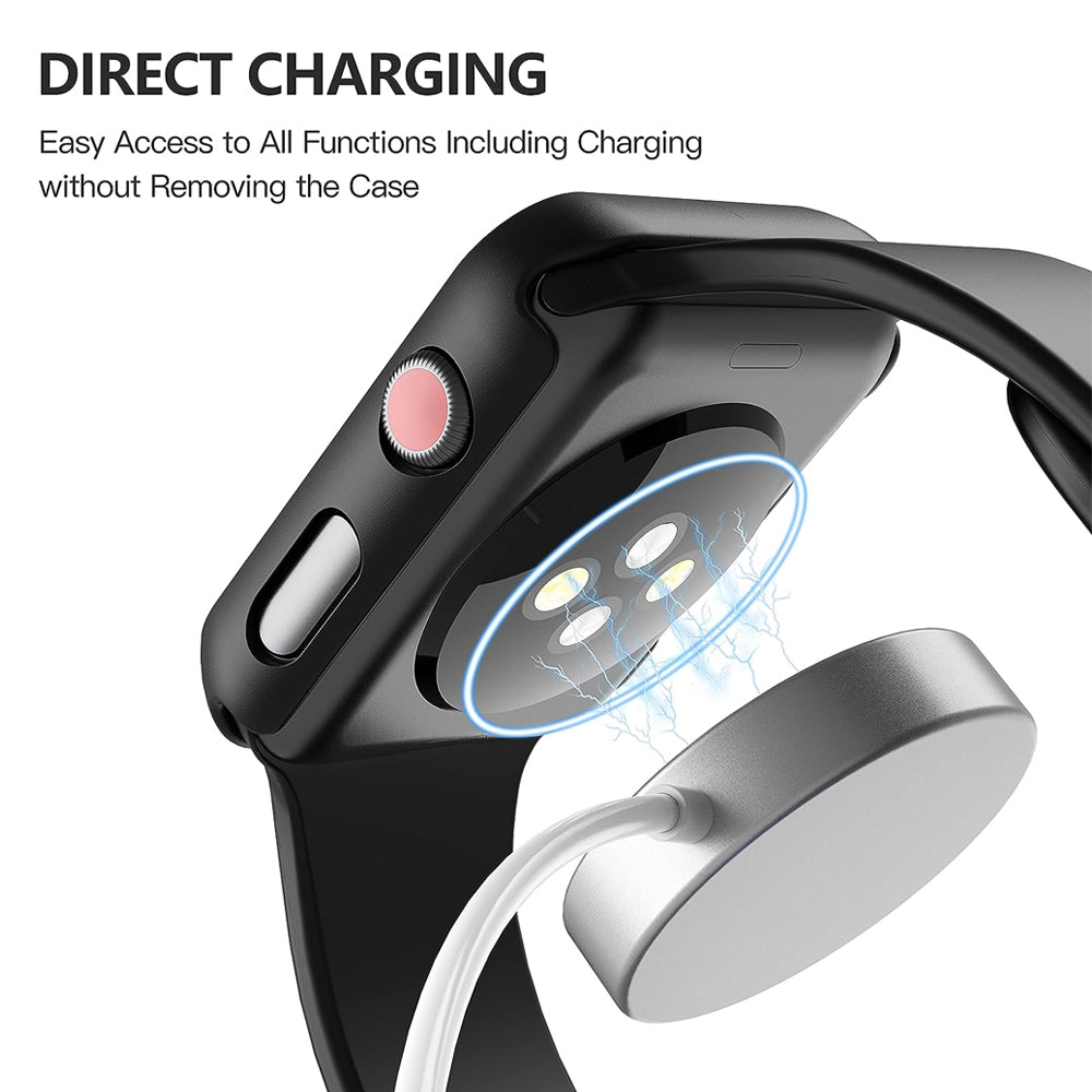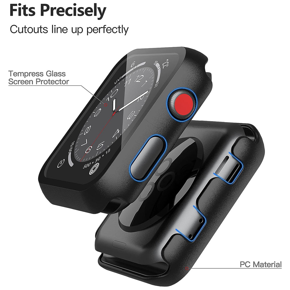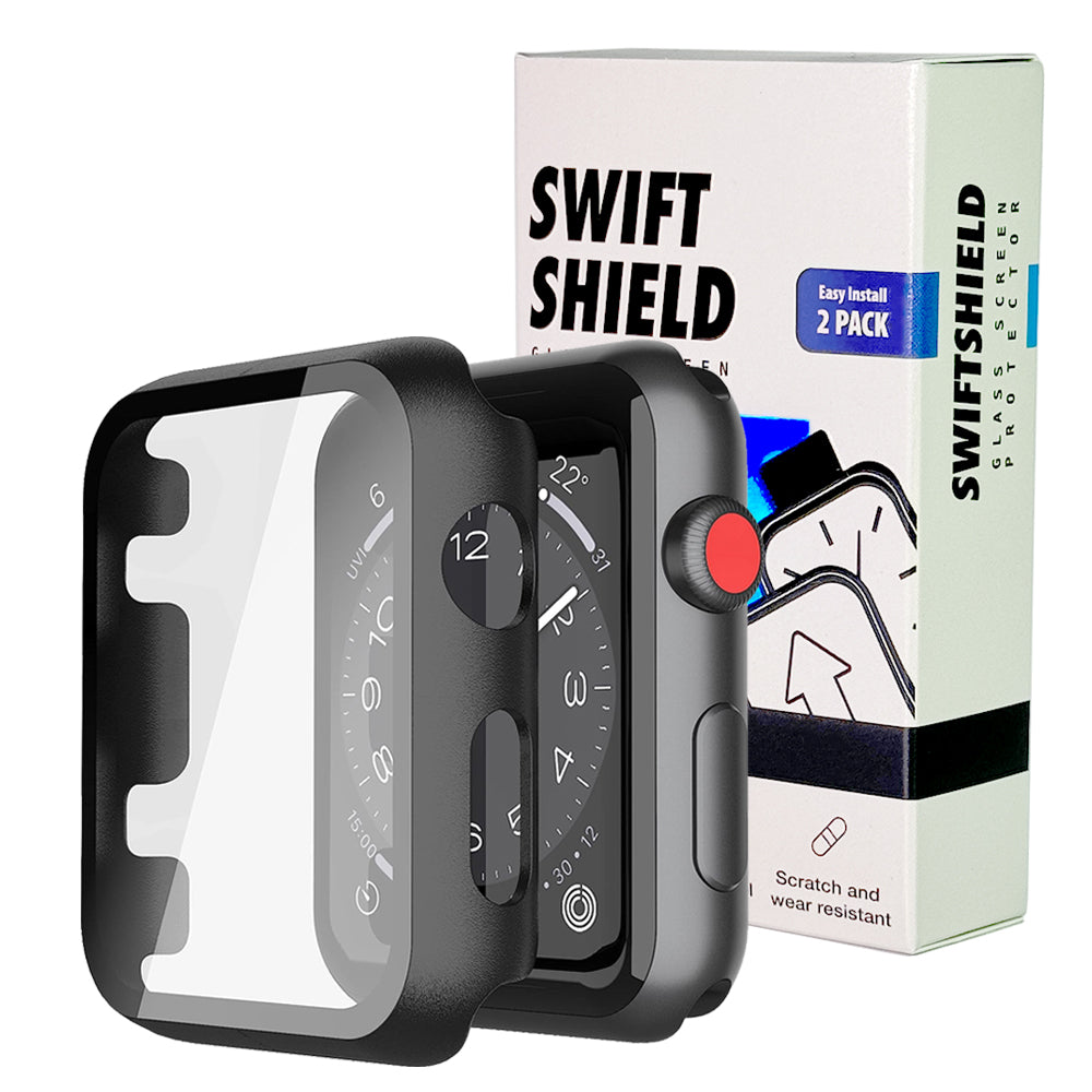 Apple Watch 38mm Case with Glass Screen Protector by SwiftShield (2 Pack - Black)